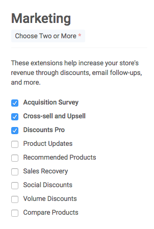 On our Starter Package form, you may have noticed the use of focused extension sections that allow the customer to pick and choose certain products. Let’s look specifically at the Marketing section.
