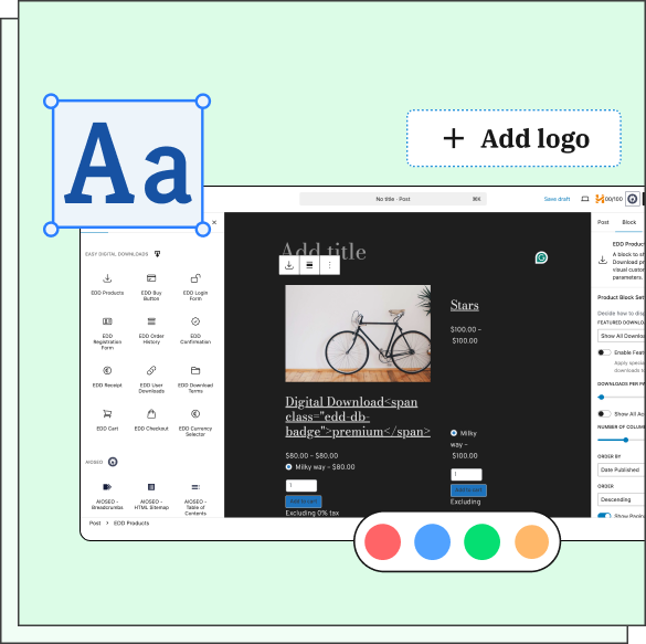 Go beyond limited Gumroad storefronts. With EDD, it’s easy to create branded stores that build trust and convert more visitors into buyers. Design custom product pages, checkout flows, and user experiences using WordPress themes, plugins, and unlimited customization options.