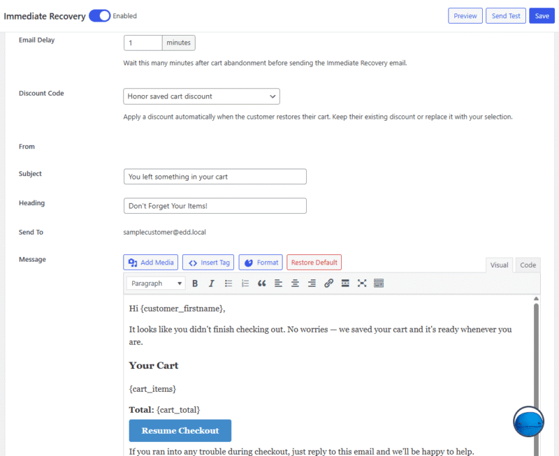 EDD Cart Recovery Activation