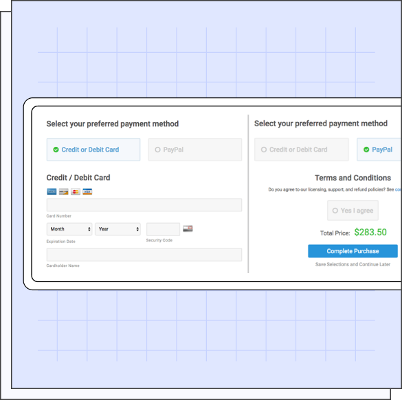 Reduce cart abandonment by letting customers change pricing options right at checkout without losing progress.