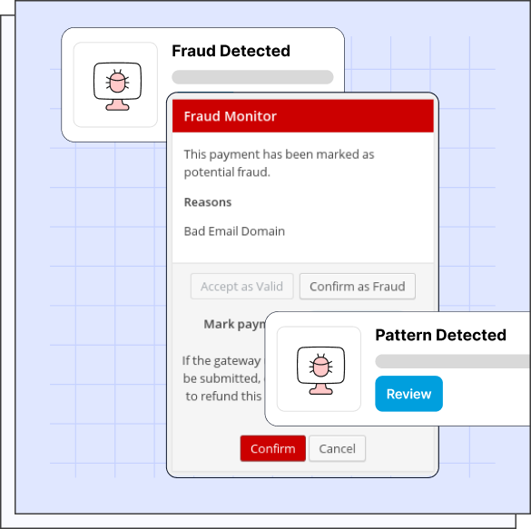Stop suspicious purchases automatically with built-in detection that screens every transaction against fraud patterns.
